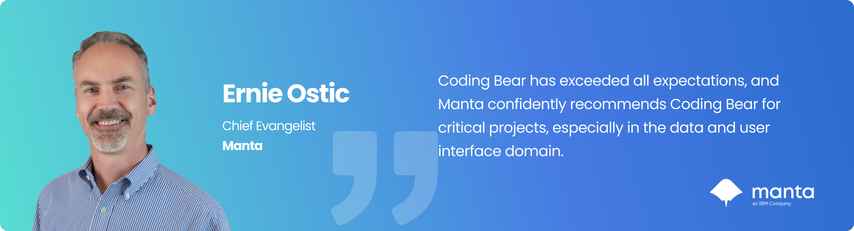Manta potřebovala umožnit méně technickým uživatelům ruční vytváření a úpravu datových toků a obohatit těmito metadaty centrální repository, která vzniká pravidelným automatickým skenováním zdrojových systému a databází.